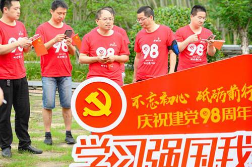 7月6日上午,hjc黄金城官网登录入口集团上百名党员齐聚潜龙渠公园,以徒步的方式纪念中国共产党建党98周年。活动现。吃泵侵匚氯氲呈拇、传递红色风采、同唱祖国赞歌,通过线上和线下相结合的形式,展开了一场红色主题的党员教育活动。